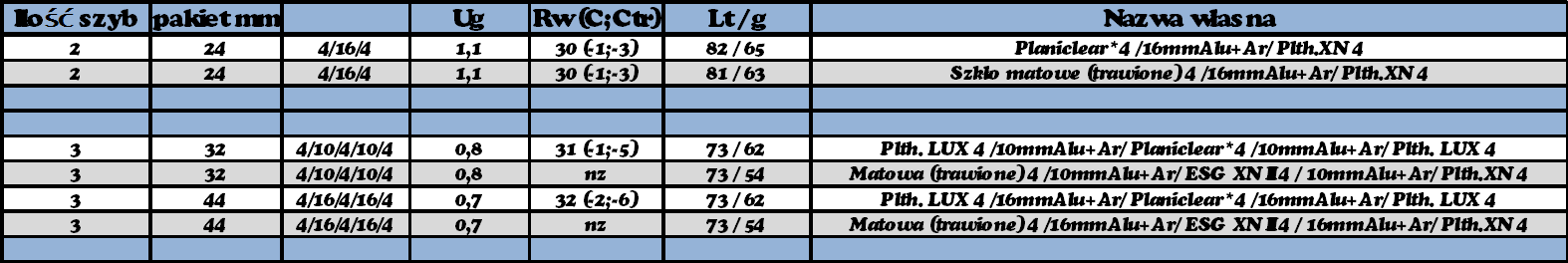 | Izolacyjność akustyczna z pakietem szybowym 4/16/4: | 33(-2;-5)dB |