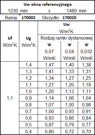 | Współczynnik przenikania ciepła: | Uf=1,3 - 1,4W/m2K |